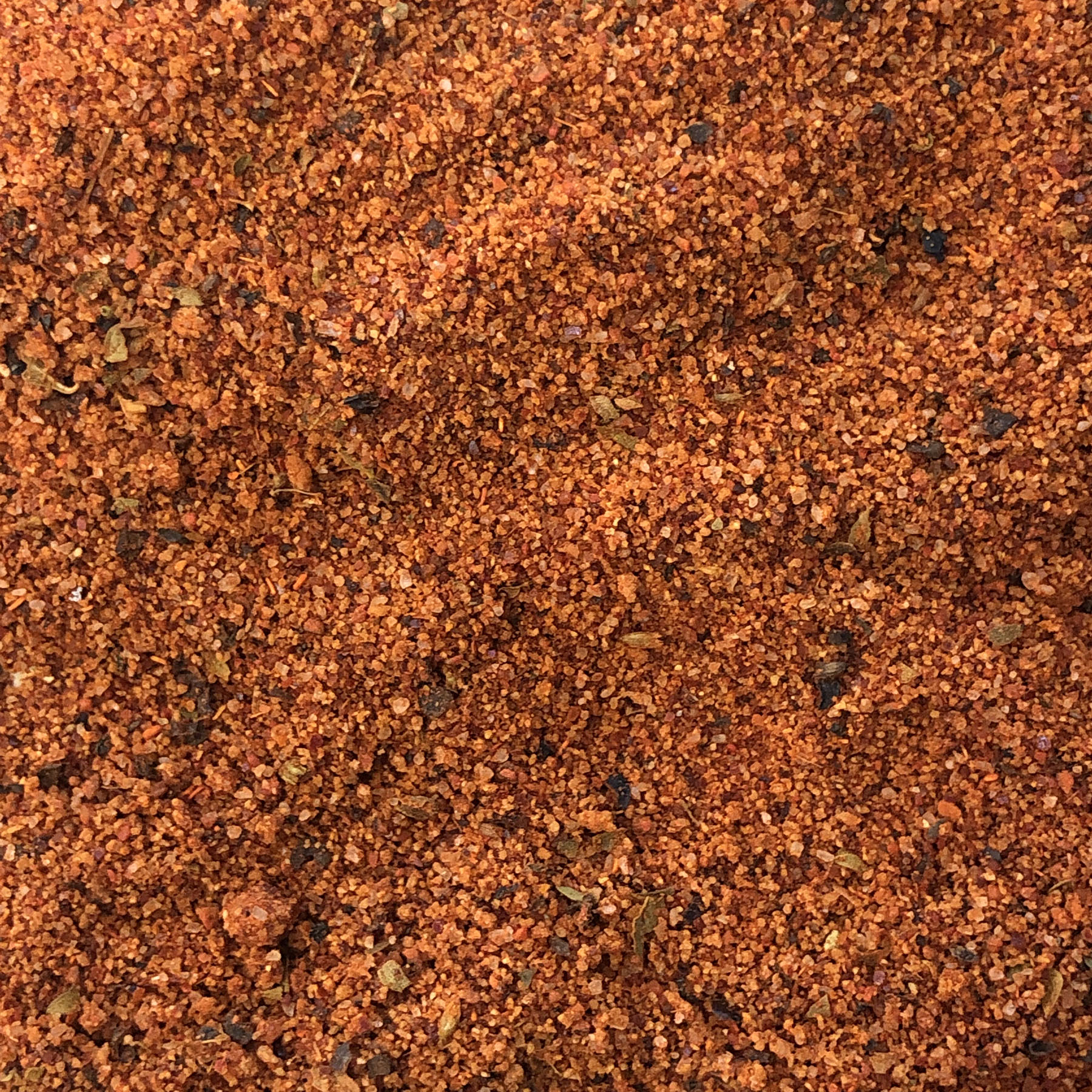 Sea salt, sugar, chili, garlic black pepper, cumin, oregano, vinegar, citric acid, orange annatto (There is a 2 ounce minimum for each spice)