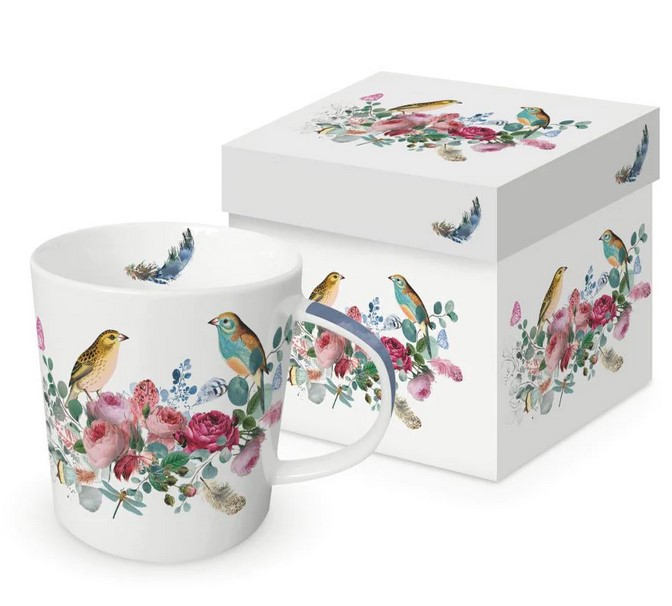 This New Bone China porcelain mug is excellent for your morning cup of tea or coffee. Adorable pattern and comfortable to hold this 13.5 oz. mug is the perfect addition to your home. Dishwasher and microwave safe. Comes in a matching gift box!