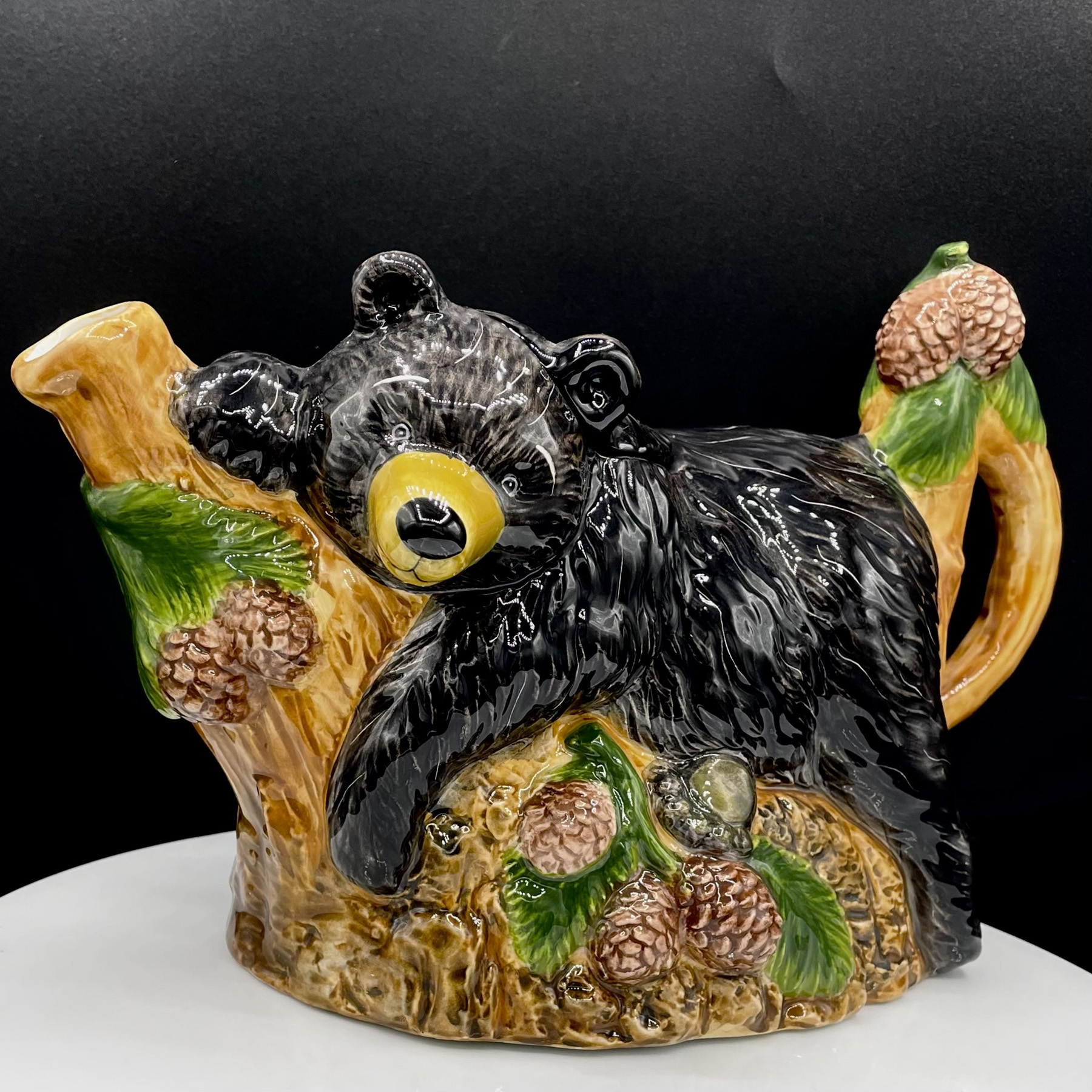 Nothing says tea like a lazy black bear draped across a log. This charming and unique teapot is completely functional. Holding 4-6 cups of tea it is the perfect addition to any cabin or rustic setting,