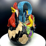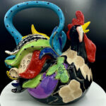 This Funky Black Rooster Teapot is the perfect amount of jazz and flavor for your kitchen. This teapot is completely functional, holds 4-6 cups of teas. Design features a Rooster vividly painted with a blue handle.