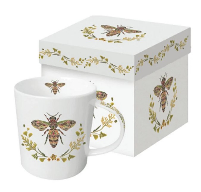 This New Bone China porcelain mug is excellent for your morning cup of tea or coffee. Adorable pattern and comfortable to hold this 13.5 oz. mug is the perfect addition to your home. Dishwasher and microwave safe. Comes in a matching gift box!