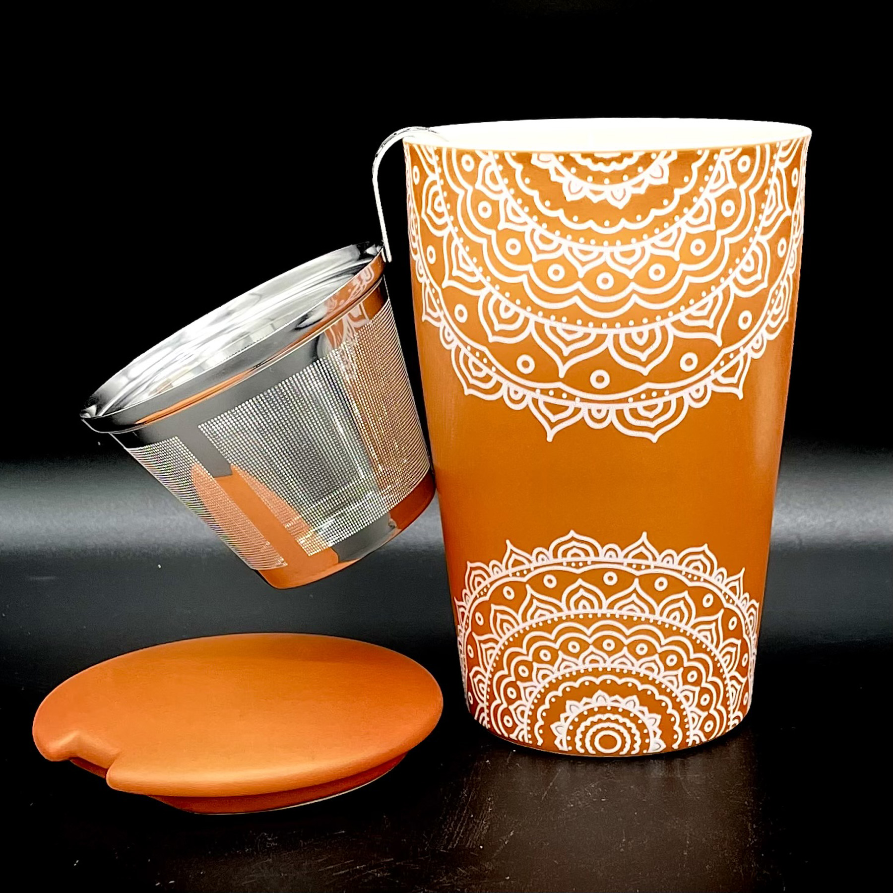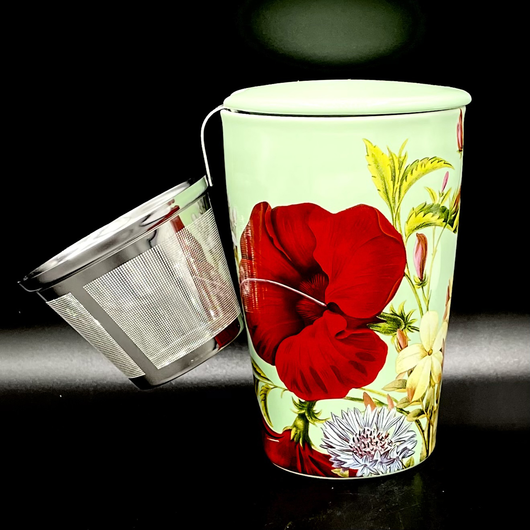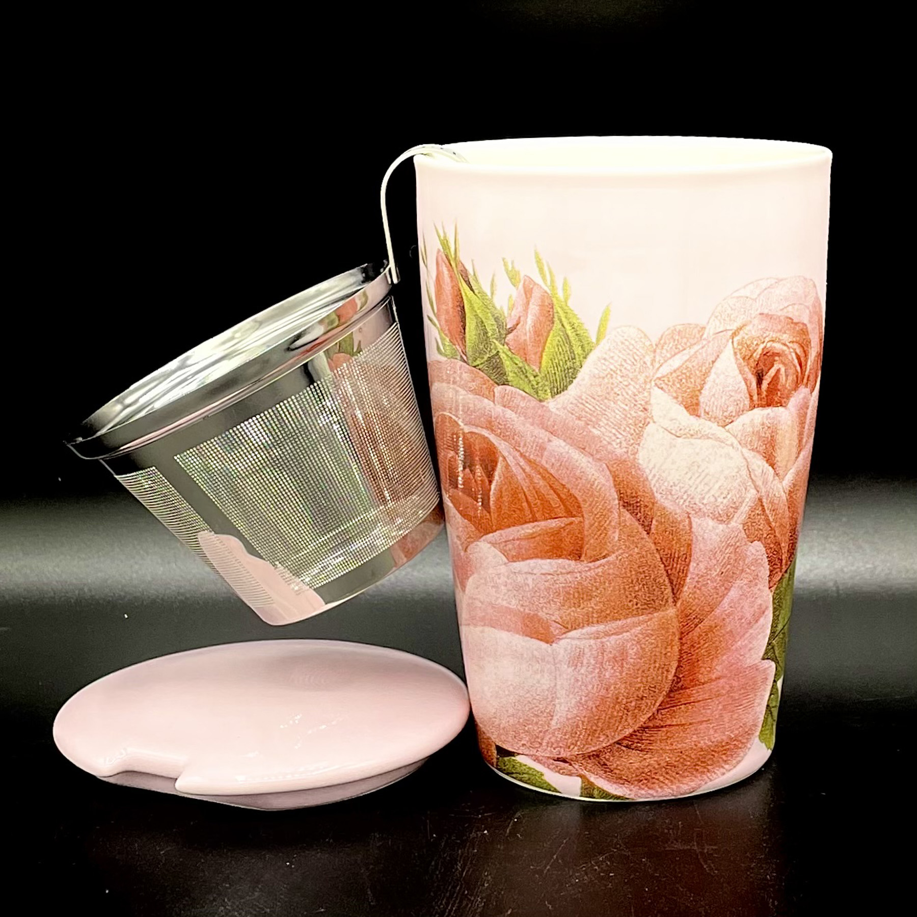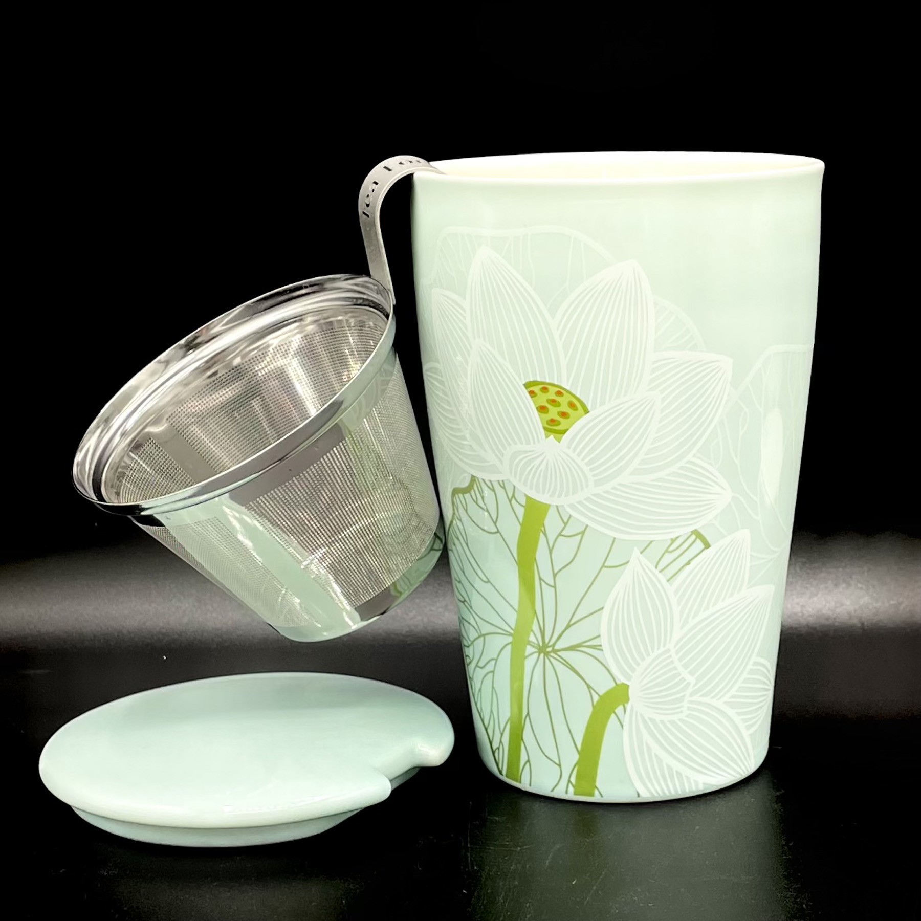 Loose tea by the cup! Double-wall ceramic tumbler and integrated stainless steel infuser make steeping loose tea by the cup simple. The innovative double-wall construction keeps tea hot and the tumbler cozy to hold. Steeps a generous 12 oz. Cup and lid are dishwasher and microwave safe.