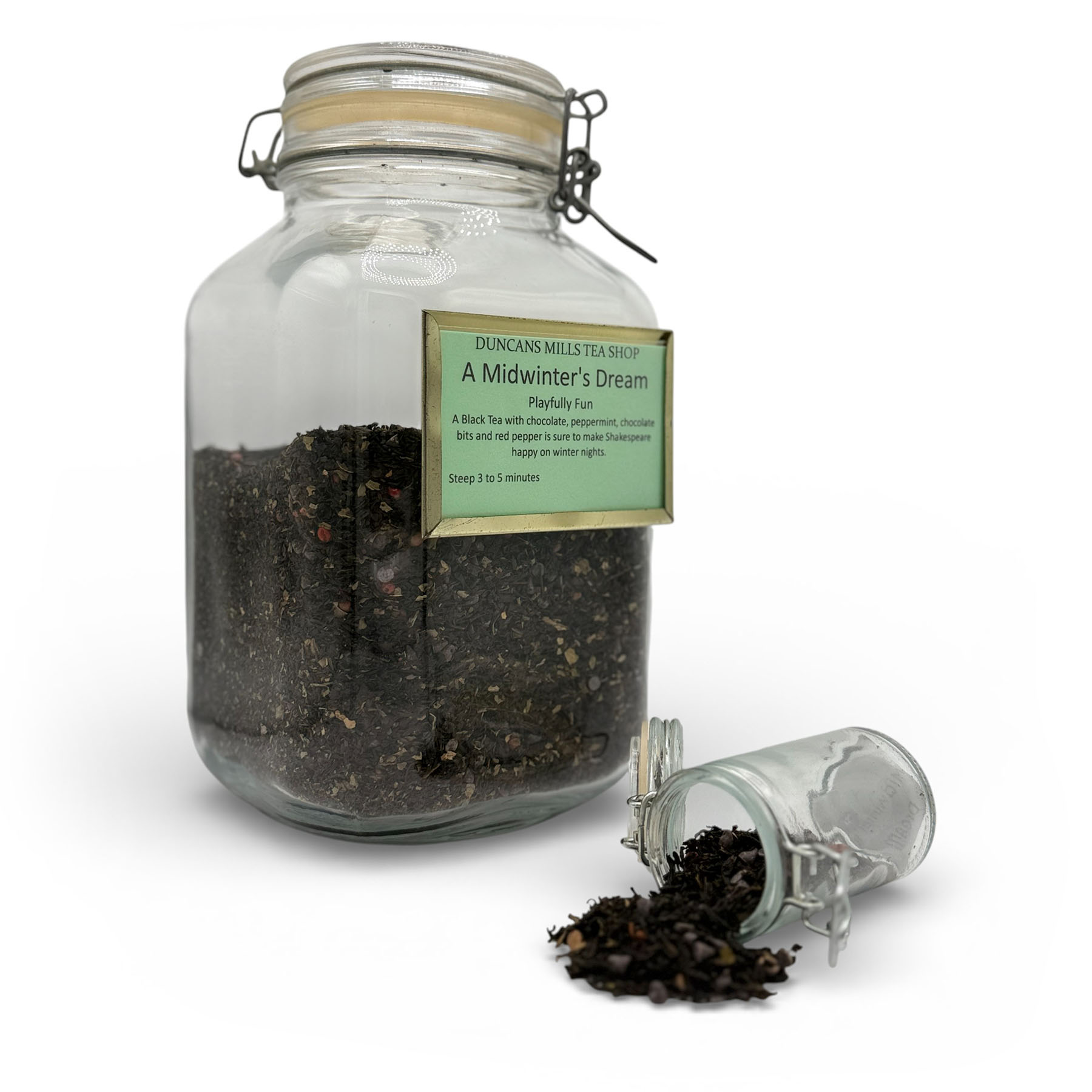 A black tea with chocolate, peppermint, chocolate bits and red pepper is sure to make Shakespeare happy on winter nights.