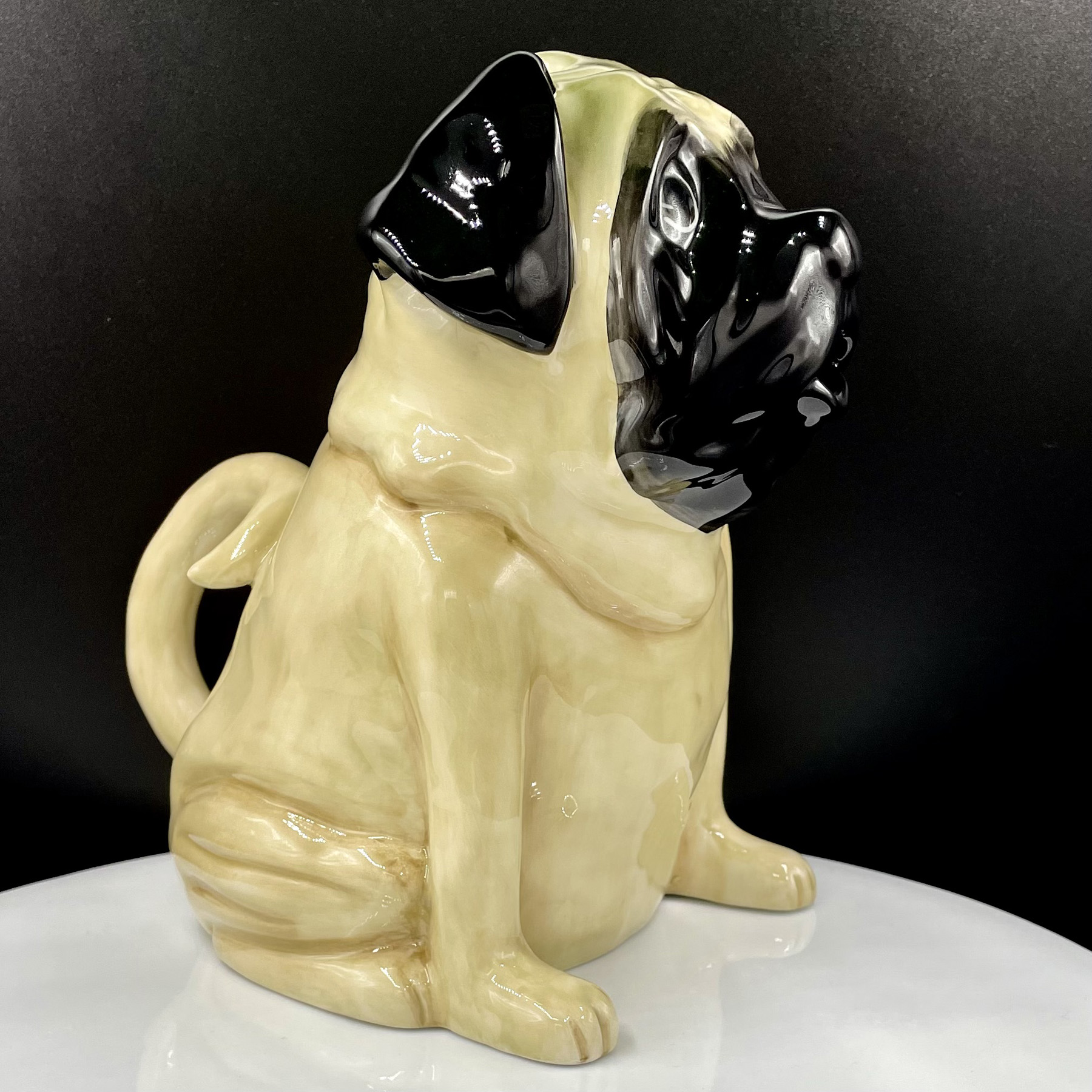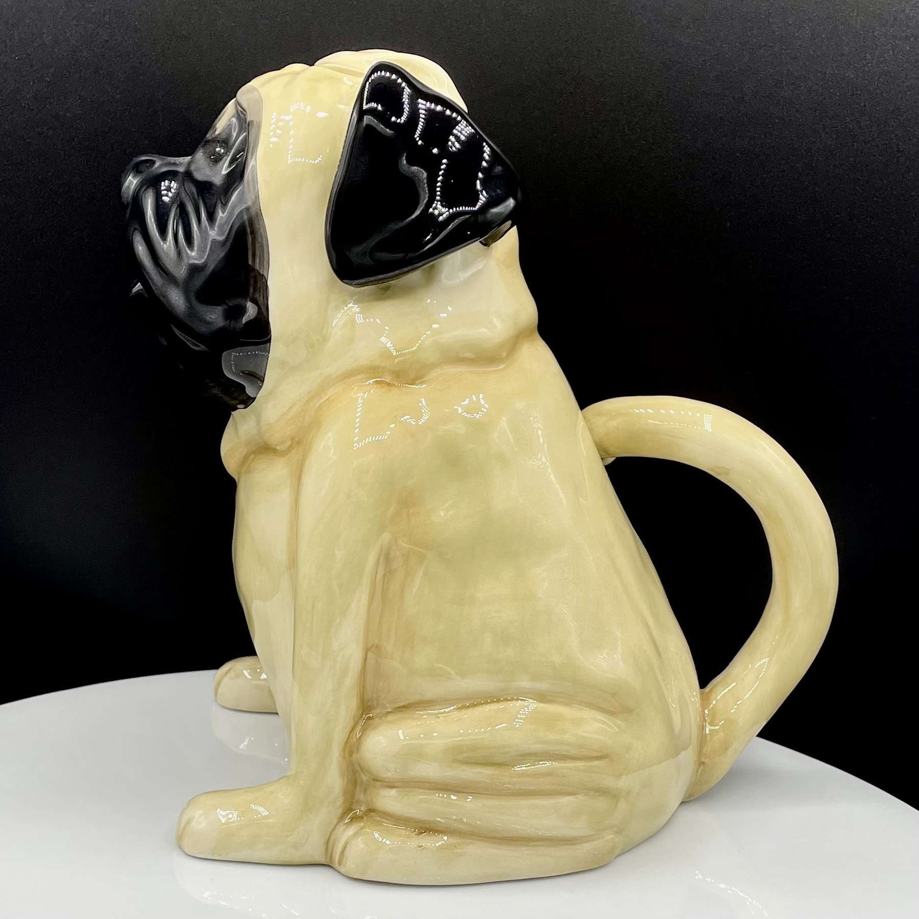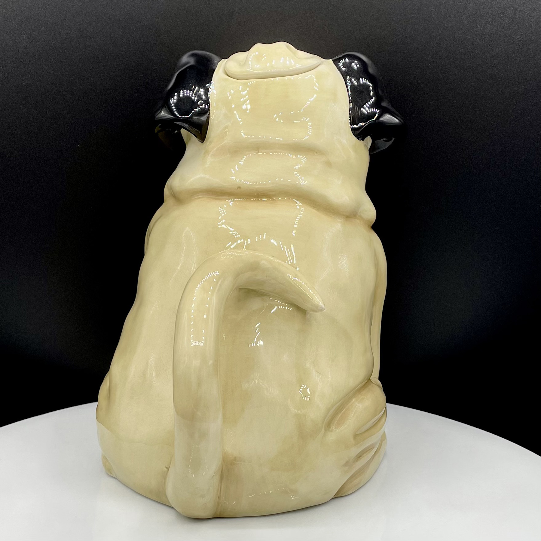 Meet our classic cream colored pug with sweet black ears and face, the perfect companion for your tea gatherings! Completely functional, this teapot holds 4-6 cups of tea. Sure to delight the dog lovers and tea lovers alike.