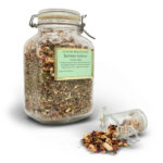 Ingredients: Apple pieces, orange peel, hibiscus blossoms, apple cubes, blackberry leaves, stinging nettle leaves, pineapple and papaya flakes, flavoring, silver linden blossoms, freeze dried whole raspberries, freeze dried strawberry pieces, sunflower blossoms, rose petals, roman chamomile